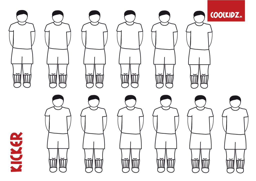 Drucke Dir zunächst alle Bastelvorlagen auf weißem Karton aus. Beklebe nun Deine Spielfläche mit der Vorlage und schneide die Spieler sorgfältig aus.