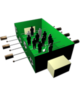 Stelle Deinen Kicker auf einen Tisch und suche Dir einen Mitspieler. Bringe die Holzperle ins Spiel und los gehts!!!